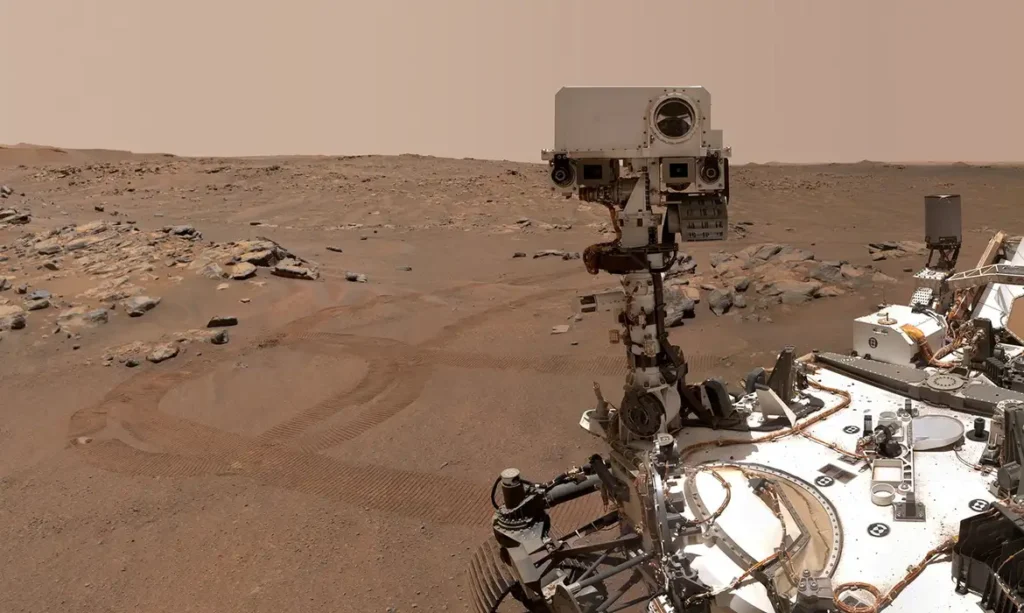 Desde o pouso na superfície de Marte em 2021, o rover de seis rodas tem explorado a Cratera de Jezero, uma área no hemisfério norte do planeta que já foi inundada e abriga uma antiga bacia lacustre, em busca de sinais de vida antiga.